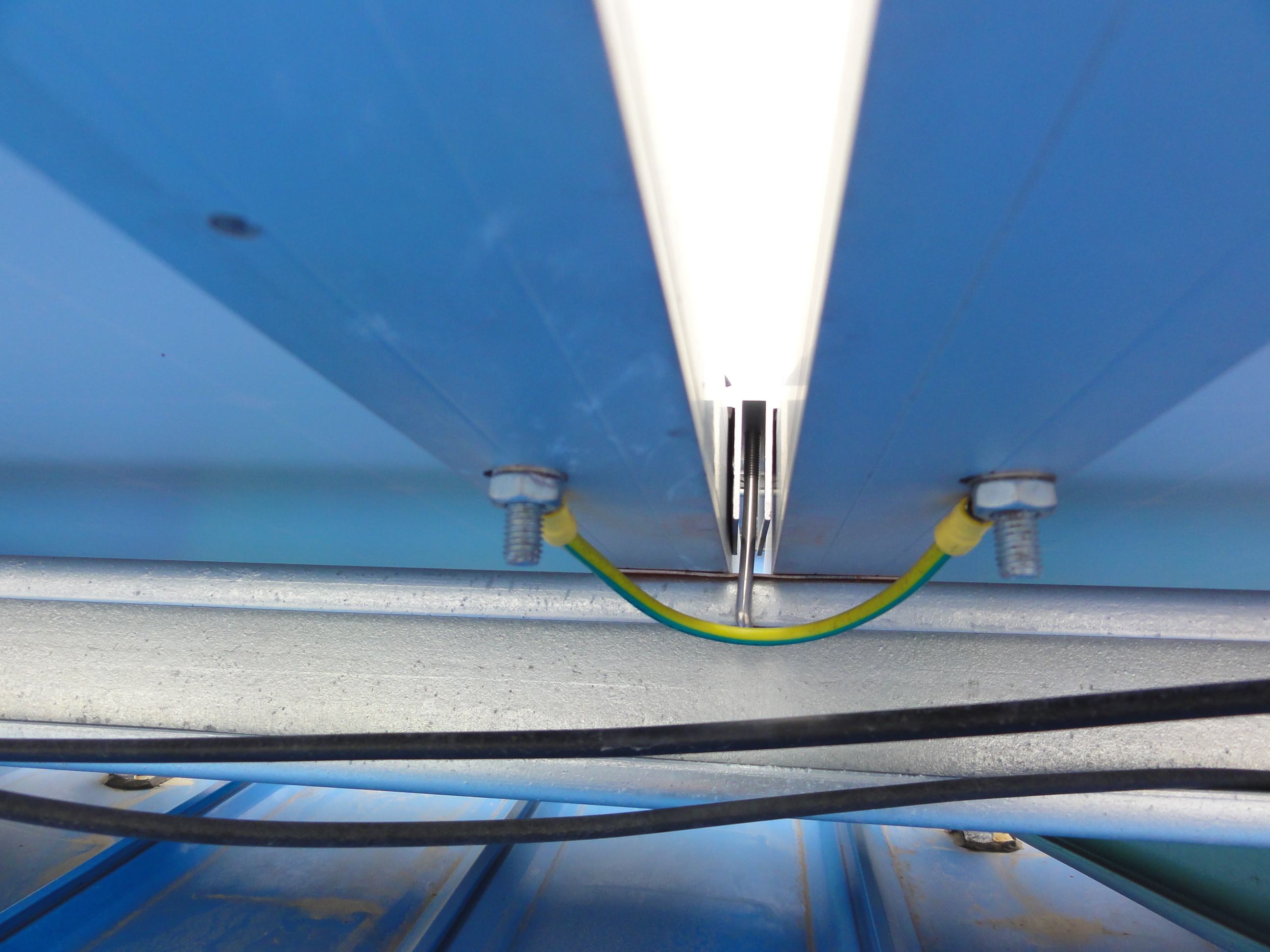 鋼結(jié)構(gòu)廠房光伏電站防雷思路跟混凝土大體思路差不多,接閃器的選擇,引下線的選擇,材料的連接都與混凝土屋面相似。不過對(duì)于鋼結(jié)構(gòu)屋面,由于鋼結(jié)構(gòu)防雷跟混凝土不同,混凝土有獨(dú)立的防雷系統(tǒng),完整的接閃器,引下線,接地裝置。但是對(duì)于鋼結(jié)構(gòu)屋面來說,并沒有獨(dú)立的防雷系統(tǒng),整個(gè)結(jié)構(gòu)式一個(gè)很好的導(dǎo)體,可以直接將雷擊導(dǎo)入到接地裝置中,有的鋼結(jié)構(gòu)廠房甚至沒有接閃器,所以對(duì)已光伏電站鋼結(jié)構(gòu)屋面來說,可以直接將引下線與鋼結(jié)構(gòu)屋面連接起來,可以與鋼結(jié)構(gòu)屋面的主梁連起來。以達(dá)到防雷的目的。我們只需把光伏電站防雷系統(tǒng)依附在混凝土結(jié)構(gòu)的防雷系統(tǒng)即可達(dá)到防雷目的,