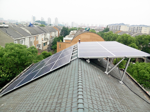 上海寶山錦秋花園別墅有多種屋頂結構,本期案例為斜瓦屋頂,采用的是磁瓦掛鉤支架,組建沿屋面平鋪安裝。