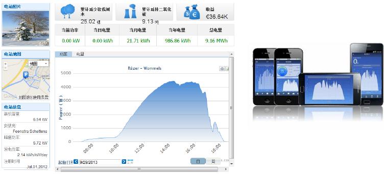 采用第三方監(jiān)控系統(tǒng)實現(xiàn)整個光伏系統(tǒng)的監(jiān)控和展示,用戶可在電腦和移動設備上進行發(fā)電系統(tǒng)查看。