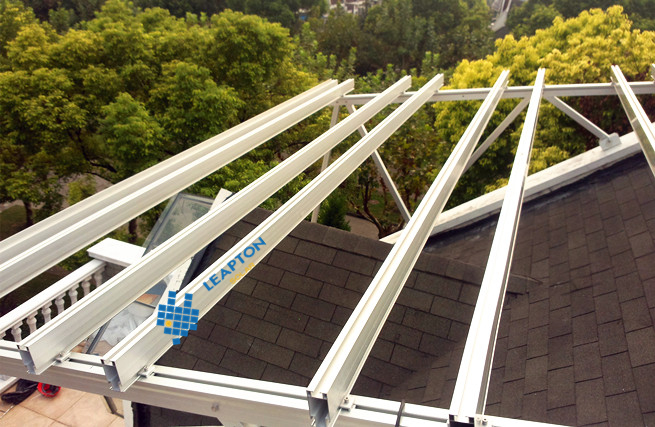 屋頂情況:連棟別墅,混凝土斜屋頂。采用固定式支架,支架通過(guò)膨脹螺栓固定安裝在女兒墻上,支架傾角20度。安裝250W多晶組件15塊, 安裝功率3.75KW。