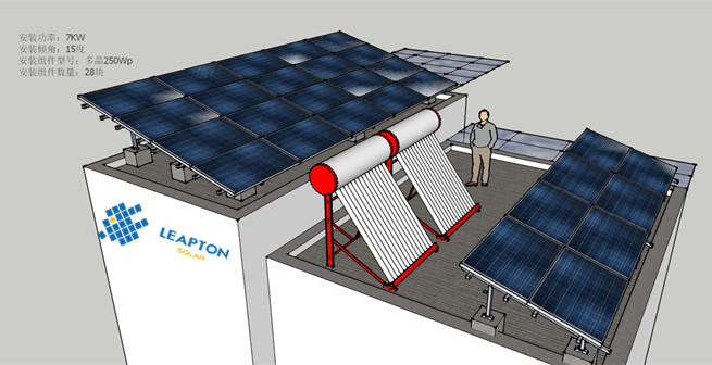 項(xiàng)目情況: 屋頂情況:連棟別墅,混凝土平屋頂。屋頂情況較為復(fù)雜,可采用壓載式支架,傾角10度。安裝250W多晶組件20塊,功率5.0KW。? 效果圖 發(fā)電量估算本光伏系統(tǒng)的首年發(fā)電量5678
